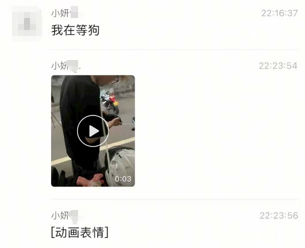 女生不知道是出于什么心理,拍摄了3秒自己拿绳子牵着男生的视频并发到了某个机车社群里,还洋洋得意地说:“我在等狗”。