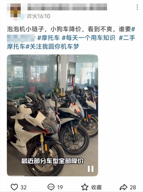 连机车经销商都慌了,为了不影响销量,部分门店开始给视频同款车子降价促销,原本2万多1万多的车,直降3000块,这在以前很少见。